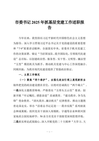 / 【七哥公文】2025年:市委书记2025年抓基层党建工作述职报告+更多免费公文+VX:QiGeGongWen2024