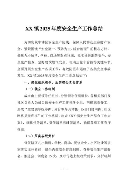 / 【七哥公文】2025年:XX镇2025年度安全生产工作总结+更多免费公文+VX:QiGeGongWen2024