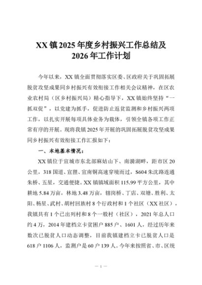【七哥公文】2025年:XX镇2025年度乡村振兴工作总结及2026年工作计划+更多免费公文+VX:QiGeGongWen2024