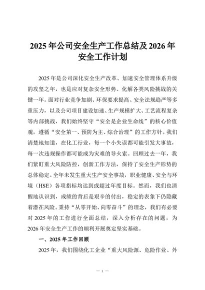 【七哥公文】2025年:2025年公司安全生产工作总结及2026年安全工作计划+更多免费公文+VX:QiGeGongWen2024