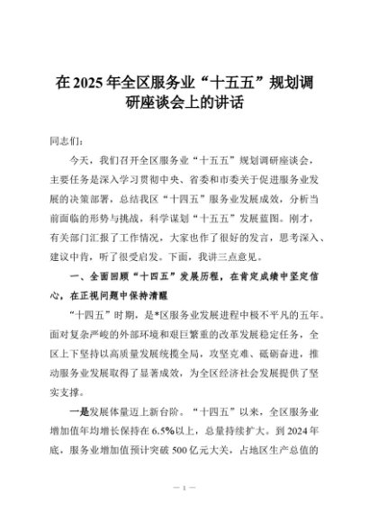【七哥公文】2025年:在2025年全区服务业“十五五”规划调研座谈会上的讲话+更多免费公文+VX:QiGeGongWen2024