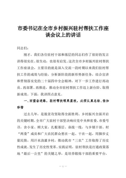 【七哥公文】2025年:市委书记在全市乡村振兴驻村帮扶工作座谈会议上的讲话+更多免费公文+VX:QiGeGongWen2024