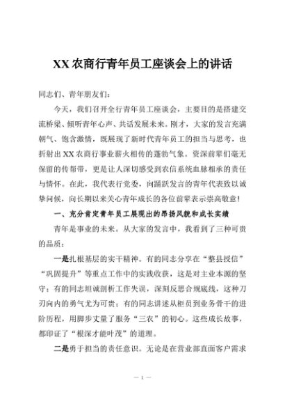 / 【七哥公文】2025年:XX农商行青年员工座谈会上的讲话+更多免费公文+VX:QiGeGongWen2024