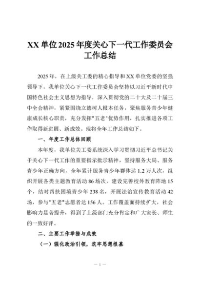 / 【七哥公文】2025年:XX单位2025年度关心下一代工作委员会工作总结+更多免费公文+VX:QiGeGongWen2024