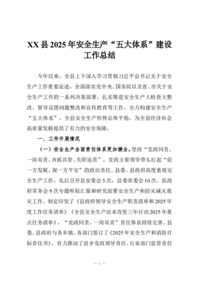 / 【七哥公文】2025年:XX县2025年安全生产“五大体系”建设工作总结+更多免费公文+VX:QiGeGongWen2024