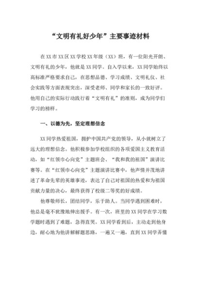 / 【七哥公文】2025年:“文明有礼好少年”主要事迹材料+更多免费公文+VX:QiGeGongWen2024
