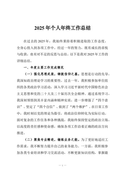 / 【七哥公文】2025年:2025年个人年终工作总结+更多免费公文+VX:QiGeGongWen2024