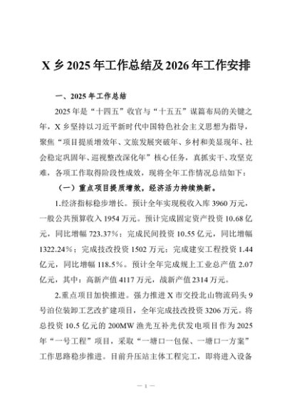 / 【七哥公文】2025年:X乡2025年工作总结及2026年工作安排+更多免费公文+VX:QiGeGongWen2024