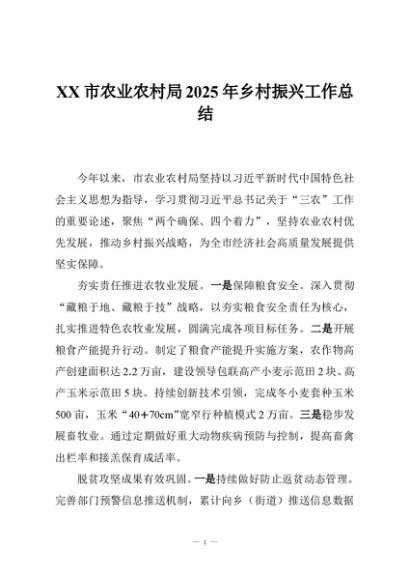 / 【七哥公文】2025年:XX市农业农村局2025年乡村振兴工作总结+更多免费公文+VX:QiGeGongWen2024