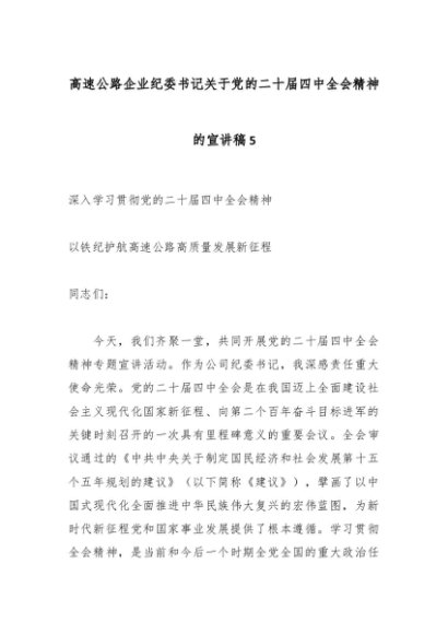 【七哥公文】2025年:高速公路企业纪委书记关于党的二十届四中全会精神的宣讲稿5_副本+更多免费公文+VX:QiGeGongWen2024