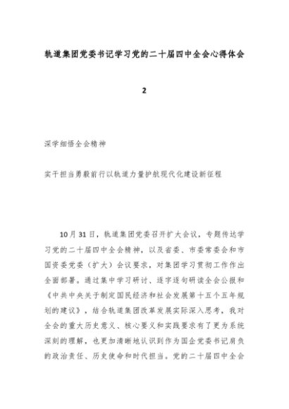 【七哥公文】2025年:轨道集团党委书记学习党的二十届四中全会心得体会2_副本+更多免费公文+VX:QiGeGongWen2024