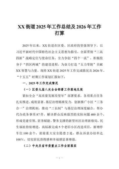 / 【七哥公文】2025年:XX街道2025年工作总结及2026年工作打算+更多免费公文+VX:QiGeGongWen2024
