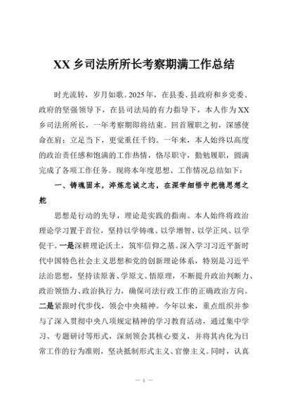 / 【七哥公文】2025年:XX乡司法所所长考察期满工作总结+更多免费公文+VX:QiGeGongWen2024