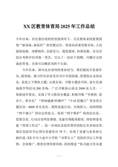 / 【七哥公文】2025年:XX区教育体育局2025年工作总结+更多免费公文+VX:QiGeGongWen2024