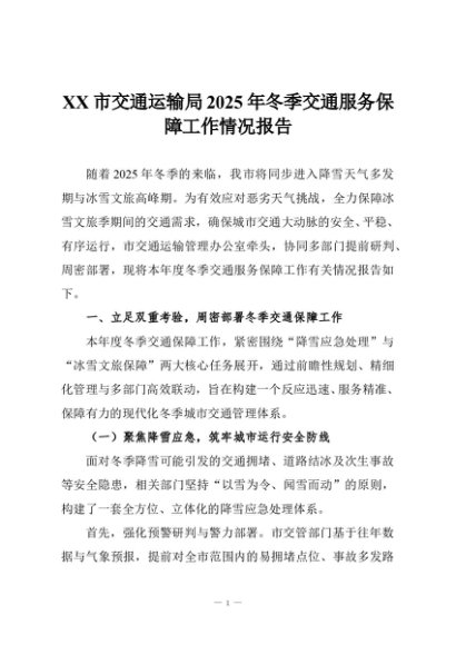 【七哥公文】2025年:XX市交通运输局2025年冬季交通服务保障工作情况报告+更多免费公文+VX:QiGeGongWen2024