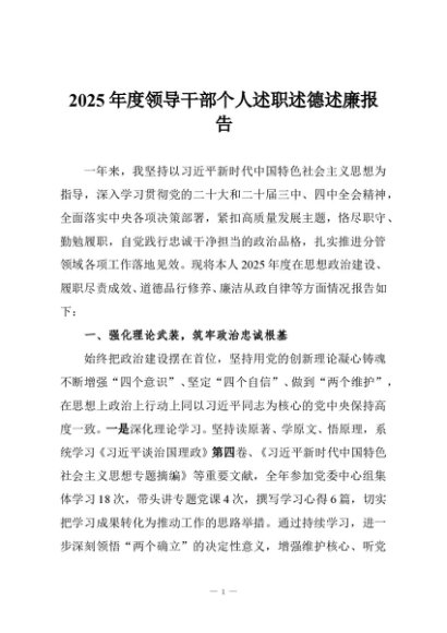 / 【七哥公文】2025年:2025年度领导干部个人述职述德述廉报告+更多免费公文+VX:QiGeGongWen2024