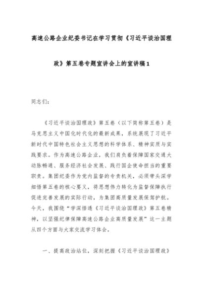 【七哥公文】2025年:高速公路企业纪委书记在学习贯彻《总书记谈治国理政》第五卷专题宣讲会上的宣讲稿1_副本+更多免费公文+VX:QiGeGongWen2024