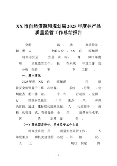 【七哥公文】2025年:XX市自然资源和规划局2025年度林产品质量监管工作总结报告+更多免费公文+VX:QiGeGongWen2024