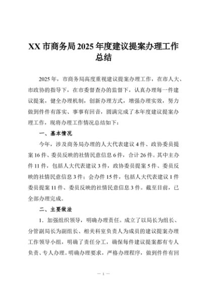 / 【七哥公文】2025年:XX市商务局2025年度建议提案办理工作总结+更多免费公文+VX:QiGeGongWen2024