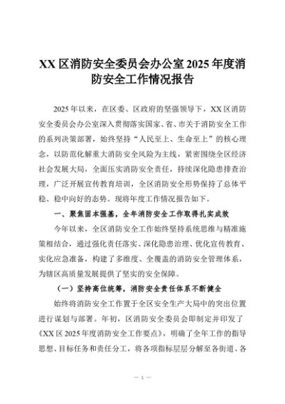 【七哥公文】2025年:XX区消防安全委员会办公室2025年度消防安全工作情况报告+更多免费公文+VX:QiGeGongWen2024