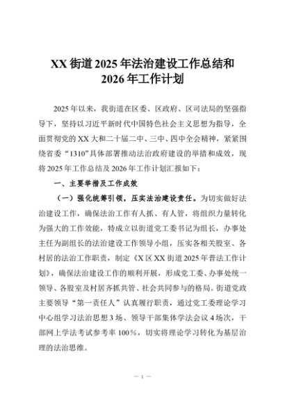 【七哥公文】2025年:XX街道2025年法治建设工作总结和2026年工作计划+更多免费公文+VX:QiGeGongWen2024