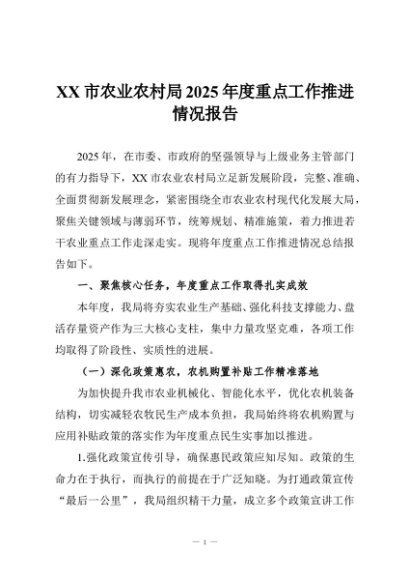 / 【七哥公文】2025年:XX市农业农村局2025年度重点工作推进情况报告+更多免费公文+VX:QiGeGongWen2024
