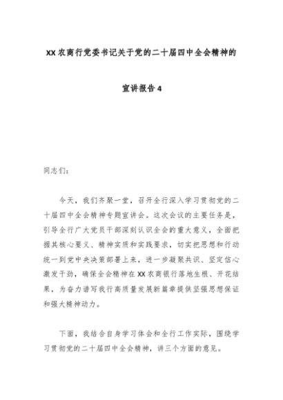 【七哥公文】2025年:XX农商行党委书记关于党的二十届四中全会精神的宣讲报告4_副本+更多免费公文+VX:QiGeGongWen2024