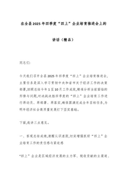 【七哥公文】2025年:在全县2025年四季度“四上”企业培育推进会上的讲话(精品)_副本+更多免费公文+VX:QiGeGongWen2024