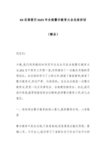 【七哥公文】2025年:XX农商银行2025年合规警示教育大会总结讲话(精品)_副本+更多免费公文+VX:QiGeGongWen2024
