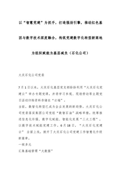 【七哥公文】2025年:以“智慧党建”为抓手,打造强劲引擎,推动红色基因与数字技术深度融合,构筑党建数字化转型新高地 为组织赋能为基层减负(石化公司)_副本+更多免费公文+VX:QiGeGongWen2024