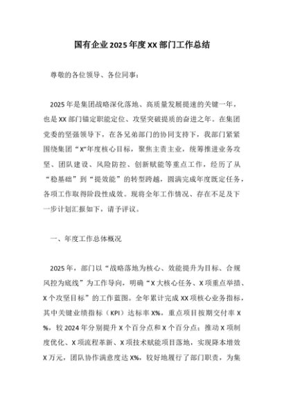 / 【七哥公文】2025年:国有企业2025年度XX部门工作总结+更多免费公文+VX:QiGeGongWen2024