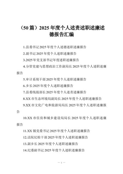 【七哥公文】2025年:(50篇)2025年度个人述责述职述廉述德报告汇编+更多免费公文+VX:QiGeGongWen2024