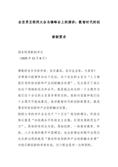 【七哥公文】2025年:在世界互联网大会乌镇峰会上的演讲:数智时代的创新新要求_副本+更多免费公文+VX:QiGeGongWen2024