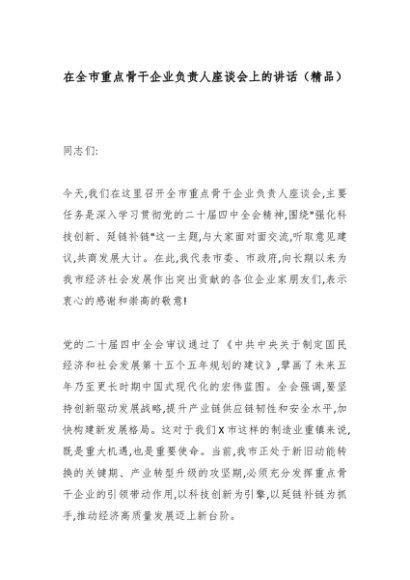 【七哥公文】2025年:在全市重点骨干企业负责人座谈会上的讲话(精品)_副本+更多免费公文+VX:QiGeGongWen2024