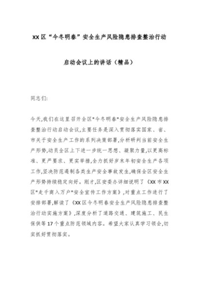 【七哥公文】2025年:XX区“今冬明春”安全生产风险隐患排查整治行动启动会议上的讲话(精品)_副本+更多免费公文+VX:QiGeGongWen2024