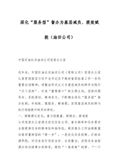 【七哥公文】2025年:深化“服务型”督办为基层减负、提效赋能(油田公司)_副本+更多免费公文+VX:QiGeGongWen2024