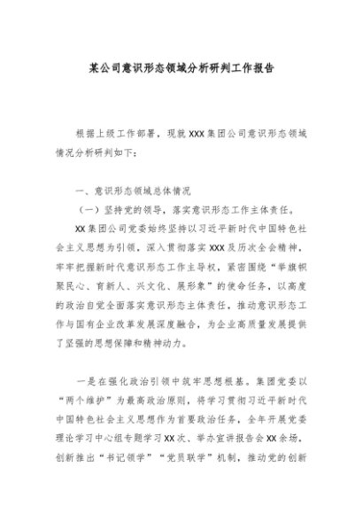 / 【七哥公文】2025年:某公司意识形态领域分析研判工作报告_副本+更多免费公文+VX:QiGeGongWen2024