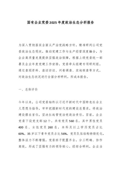 / 【七哥公文】2025年:国有企业党委2025年度政治生态分析报告_副本+更多免费公文+VX:QiGeGongWen2024