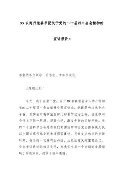 【七哥公文】2025年:XX农商行党委书记关于党的二十届四中全会精神的宣讲报告1_副本+更多免费公文+VX:QiGeGongWen2024