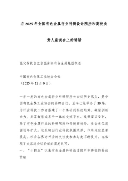 【七哥公文】2025年:在2025年全国有色金属行业科研设计院所和高校负责人座谈会上的讲话_副本+更多免费公文+VX:QiGeGongWen2024