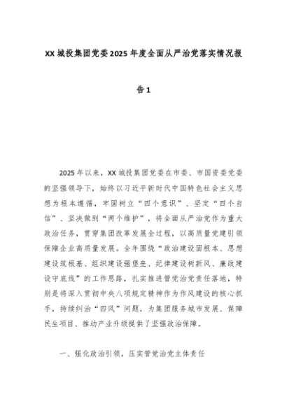 【七哥公文】2025年:XX城投集团党委2025年度全面从严治党落实情况报告1_副本+更多免费公文+VX:QiGeGongWen2024