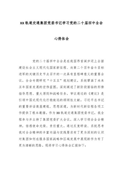 【七哥公文】2025年:XX轨道交通集团党委书记学习党的二十届四中全会心得体会_副本+更多免费公文+VX:QiGeGongWen2024