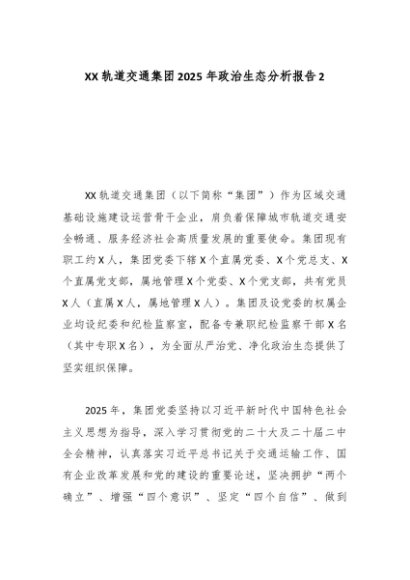 【七哥公文】2025年:XX轨道交通集团2025年政治生态分析报告2_副本+更多免费公文+VX:QiGeGongWen2024