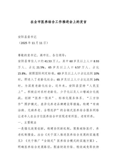 / 【七哥公文】2025年:在全市医养结合工作推进会上的发言_副本+更多免费公文+VX:QiGeGongWen2024