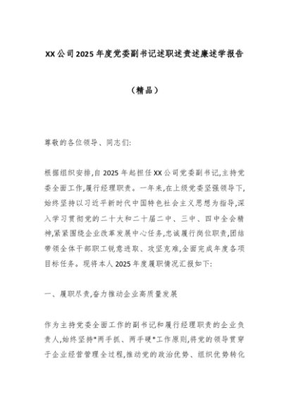【七哥公文】2025年:XX公司2025年度党委副书记述职述责述廉述学报告(精品)_副本+更多免费公文+VX:QiGeGongWen2024