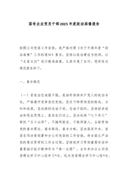 / 【七哥公文】2025年:国有企业党员干部2025年度政治画像报告_副本+更多免费公文+VX:QiGeGongWen2024
