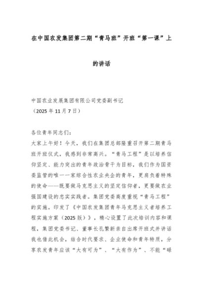 【七哥公文】2025年:在中国农发集团第二期“青马班”开班“第一课”上的讲话_副本+更多免费公文+VX:QiGeGongWen2024