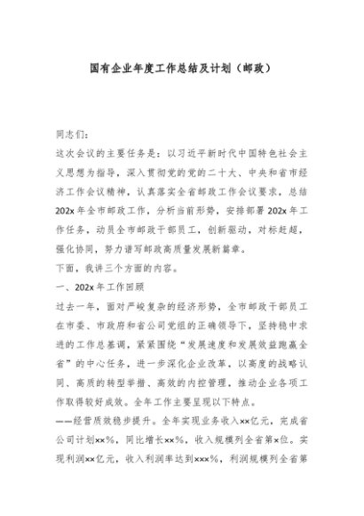 / 【七哥公文】2025年:国有企业年度工作总结及计划(邮政)_副本+更多免费公文+VX:QiGeGongWen2024