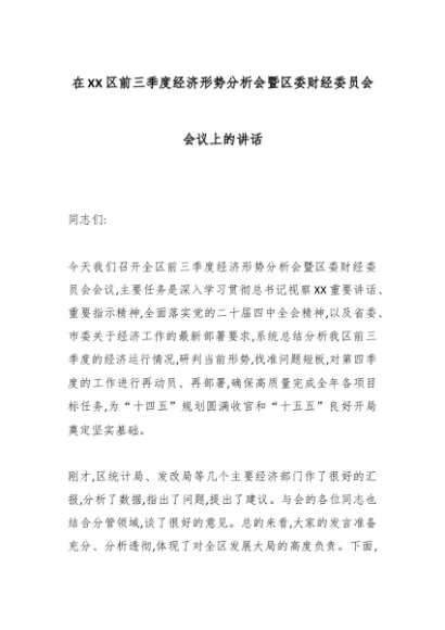 【七哥公文】2025年:在XX区前三季度经济形势分析会暨区委财经委员会会议上的讲话_副本+更多免费公文+VX:QiGeGongWen2024