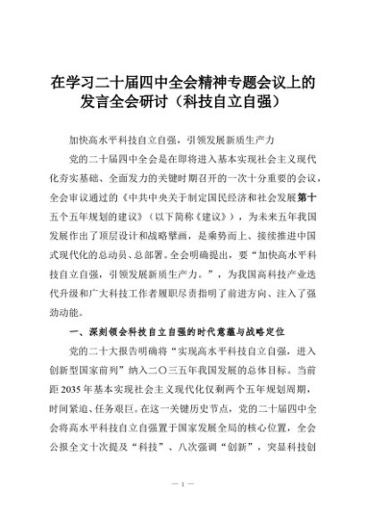 【七哥公文】2025年:在学习二十届四中全会精神专题会议上的发言全会研讨(科技自立自强)+更多免费公文+VX:QiGeGongWen2024